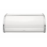 This Bread Box Roll Top White Full-Size Bin - Brabantia #173325 is large enough for 2 full loaves of bread. Re-designed with an wider grip for easier opening, this durable breadbox is constructed of corrosion resistant stainless steel and has a plastic, noise damping stop on the inside for quiet operation. The base of the interior has a knobbly surface for enhanced ventilation which helps keep your bread fresher longer. Properly ventilated and easy to clean, this bread bin is a customer favorite.