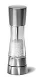 Constructed of high-quality acrylic that both performs beautifully and makes an appealing presentation, the salt mill sports brushed stainless-steel accents and transparent sides for easy identification of content levels. Its hard-wearing, diamond-sharp ceramic grinding mechanism offers spring-loaded performance for a consistent grind every time, with three pre-set grinding levels that allow for choosing between fine and coarse salt granules. Best of all, the mill ensures quick and easy refilling--simply pop off its smooth lid to restock with kosher, sea, or other varieties of coarse salt. A wonderful housewarming, wedding, or hostess gift, the gourmet salt mill measures approximately 2 by 2 by 7-1/2 inches and carries a lifetime guarantee on the grinding mechanism.