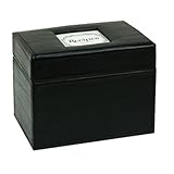 Part kitchen décor, part recipe storage and part organizer - a Recipe File Box from CR Gibson is all of these. Heavy card stock box with metal-hinged lid comes with 40 4-inch x 6-inch decorated recipe cards and 12 divider cards to make organization easy. Box can hold more than 400 recipe cards. Custom recipe storage in classic black genuine bonded leather with window frame for embossed letter inserts that slip-in easily for instant personalization. Add your favorite recipes and this Recipe File Box becomes a special gift for a bridal shower or housewarming. From memory books to note cards, every day to special events - CR Gibson has meant quality and style for more than 140 years.