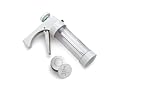 Hearts, pinwheels, ovals and squares - make dozens of yummy cookies in a flash with the Kuhn Rikon Cookie Press. The stainless steel trigger mechanism allows easy, one-handed (whether you're left or right-handed!) cookie making using any of the 14 interchangeable discs. A see-through plastic barrel lets you quickly determine how much of the contents are left. It's lightweight and easy to handle. Even kids will get into the fun using this versatile tool. Recipes included.