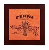 Large enough to accommodate most pots and pans, this attractive square-shaped trivet with nonskid feet offers a generous 8-inch width and can be paired with a second when extra help is necessary. The trivet not only protects tabletops and counters, but it also looks great on display, featuring original artwork created specifically for the Italian Kitchen collection. Its ceramic tile inlay with a stained, solid-wood frame combines functionality with decorative old-world charm, and a notch on the back makes it easy to hang when not in use or as decoration. Washing the trivet by hand using warm soapy water is recommended. The trivet measures 8 by 8 by 3/4 inch.