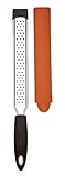 This trim, long, fine-surface grater comes in handy for everything from Parmesan for the salad to chocolate for the dessert. It's also useful for grating spices and zesting citrus fruits. Crafted from stainless steel, the grating surface is durable and corrosion-resistant, while the handle has a Soft Grip cover and the non-slip tip adds stability. For cleanup, this piece goes in the dishwasher. A protective cover is included for safe storage. --Emily Bedard
