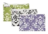These reusable fabric bags carry everything from snacks to spoons, replacing plastic bags. The zipper helps prevent spills and the water-repellent, machine washable material is great for easy cleanup. Perfect for the mom on-the-go. Endless uses - great for snacks, fruit, cereal, pacifiers, spoons, wipes and more. Includes 3 fashion prints.