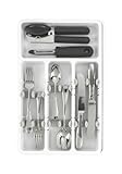 Keep your utensils neatly stacked with the OXO Good Grips Expandable Utensil Organizer. The Adjustable Dividers organize more utensils in less space by allowing them to fit in opposite directions in one compartment. Your utensils stay neatly stacked, even when the drawer is opening or closing. Adjust the location of the Dividers to accommodate utensils of different shapes and sizes, or remove the Dividers completely for open compartments. The expanded space holds longer tools and gadgets for added storage. To adjust Dividers, simply pinch the side walls and slide in or out. The Organizer expands from 9.75-inch to 16.25-inch to fit inside kitchen drawers, and non-slip feet keep the Organizer in place.