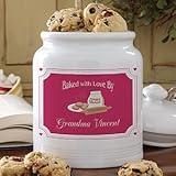 For your special someone, when it comes to baking cookies, it is an act of love! Commemorate their impressive efforts in the kitchen with our Baked With Love© Cookie Jar! Personalize the cookie jar with any name or title to appear below the platter of home-baked cookies design. Choose from 6 imprint colors to perfectly suit her personality or her kitchen decor. Cookie jar features traditional design with airtight lid and ribbed detail at the base. Beautifully crafted of fine-quality, heavy-weight, chip-resistant stoneware. Measures 10 1/2”H x 6 1/2” in diameter. Dishwasher safe. Printed design is permanent. Makes a very special gift she will enjoy filling with baked confections for years to come!