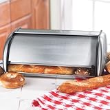 Stainless Bread Box Preserves Freshness With Flair. Perfect for today's streamlined kitchens, in rust-resistant stainless steel with a brushed finish to resist finger prints. Roll-back door provides easy access without hogging counter space. 7 1/2"Hx17"Lx10 1/4"D size accommodates longer loaves and more than a dozen bagels.