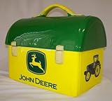 Beautifully detailed ceramic cookie jar depicts a classic lunch box complete with handle on top. John Deere logo displayed prominently on the side.