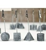 Add an elegant touch to your tableware with these Marble Place Card Holders. Great for displaying recipes reminder notes grocery lists photos on a desktop or shelf or as place card holders these wire alligator clips are sold in four uniquely shaped bases to create an attractive custom display that's only limited by your imagination. Wire Place Card Holder Features Constructed from rugged marble and metal to provide long-lasting quality and durability. Brings an elegant accent to a dinner party with stylish place card holders. Also great for creating a custom photo display on a desk shelf or counter top. An excellent way to display recipes at cook-offs cake bake-offs and more. Adds style and sophistication to any room in the house while displaying keepsakes reminders and table arrangements. Sold individually or save on each holder when you purchase in a set of twelve. Shipped in assorted shapes.
