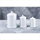 This set of ribbed canisters with airtight lids will look beautiful on your countertop. Set Includes: 0.75-qt. Canister (measures 7.25 x 4.5-in.) 1.75-qt. Canister (measures 8.5 x 5.5-in.) 3.75-qt. Canister (measures 11 x 7.5-in.).