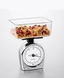 Measures up to 2 lbsFine 1/2 oz incrementsDishwasher safe bowlScale fits inside bowl for neat storage10 Year WarrantyNo assembly requiredOverall dimensions: 5.38 in. L x 4.25 in. W x 7.25 in. H (1.5 lbs)Container dimensions: 8.5 in. L x 6.5 in. W x 3 in. H Mechanical Kitchen Scale has a 2 lb capacity with a 1/2 ounce resolution, and also weighs in kilograms. This scale has a dual reading dial and clear plastic weighing bowl. When not in use, the scale fits inside the bowl for storage.