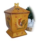 This beautiful top-of-the-line Cookie Jar is part of the Sunshine Rooster Collection - it's dishwasher safe, and is both handcrafted and hand-painted to perfection! MSRP $70