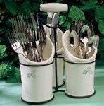 Elegant leaves accent this lovely ceramic and wire silverware caddy. Holds all of your utensils in one neat spot. 12 1/4" high