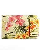 Dine elegantly with the tropical floral African Orchid print by Tommy Bahama. Printed on a polyester and linen blend and is machine washable, dry with no heat. Use of a cool iron for touch up care may be needed. The coordinating collection includes tablecloths, placemats, and napkins for full accessorizing.