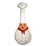 New ceramic fat chef kitchen spoon rest. Spoon rest can also be used as a wall hanging. Has a hold at top of spoon for easy hanging. Measures approximately 11". Great accent to any fat chef kitchen theme!