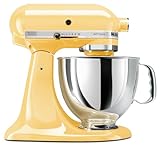 The legendary KitchenAid Artisan Series Stand Mixer is incredibly versatile. With all the available attachments, you can use it to make homemade pasta, stuff fresh sausage, whip up ice cream and give fruit a squeeze. No wonder generations of cooks have cherished theirs. Accessories Include: Pouring Shield Dough Hook Flat Beater Wire Whip Features: 10-speed slide control ranges from a very fast whip to a very slow stir Power hub for additional attachments Unique planetary mixing action of 67 points Polished stainless steel bowl features a comfortable handle 5-qt. bowl yields up to 4.5 bread loaves, 9 dozen cookies or 7 pounds of mashed potatoes.