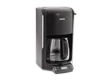 Treat yourself to legendary Krups quality with the Pro-Aroma 12-Cup Coffee Maker. Oversize shower-style head disperses hot water evenly over the coffee grounds for better flavor extraction. Illuminated LCD display the time of day and function selections. 12-cup glass carafe with coffee level indicators and flip-open lid. Water reservoir level indicator on the front so you know when it's time to add water. Modern-looking design looks great in the home or office. Aroma function extends the brew time for more flavor and pleasing coffee aroma. Programmable to wake up to hot, fresh coffee. Features Krups Duo Filter to remove unwanted taste and sediment from the brewing water. Pause and serve function lets you pour even before the brewing cycle is over. Audible signal sounds when brewing is complete. Model number:FME2 ; Watts: 1100. Weight: 4.7 lbs. Dimensions: 8.5 long x 8 deep x 13.5 high.