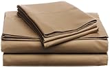 Available in a choice of colors and sizes, the Queen set offered here includes an 100-by-112-inch flat sheet, 60-by-80-inch fitted sheet, and two 20-by-31-inch Standard pillowcases. The flat sheet and pillowcases feature six-inch hems, and the fitted sheet has elastic all around to fit snugly on mattresses up to 18 inches deep. The set is imported and should be machine washed in cold and tumble dried on low.