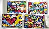 Brand New Set of 4 Romero Britto Placemats. These authentic colorful placemats are practical and stylish. Comes in 4 different styles. They have a cork back so they will not slide. The set comes with its original tag. Easy to clean. Perfect to cheer up any table. You will love them! Great as a gift! Material: paper & wood with cork back Dimensions: 15.75" L x 11.5" H x 0.1875" D Sealed in original box.