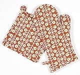 Fashion and fun are never too hot to handle. Inner quilted with heat-resistant lining. Packaged together. Mitt is 13 by 7-inch; holder is 8-inch square. Featuring the designs of John Himinez (B.F.A., graphic design; M.A., advertising, SCAD), the Hostess Collection will inspire and delight even the most gracious of hosts with its colorful Moroccan-inspired floral and lively palette. Made with resilient, machine-washable cotton twill.